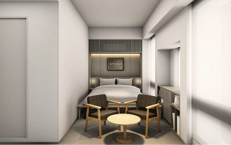 町の景色の一部となっていた象徴的な外観は引き継ぎながら、無印良品の世界観を感じられる18室のホテルへと生まれ変わりました。